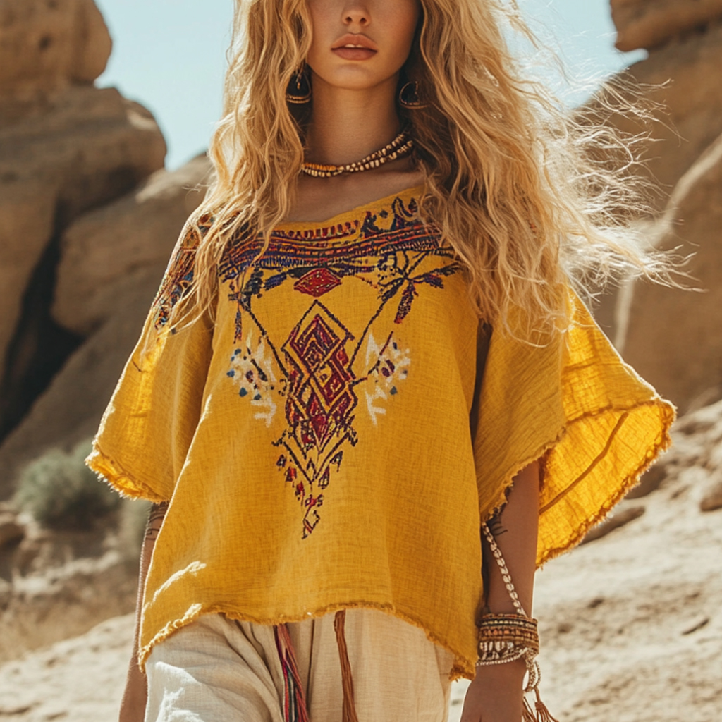 Desert Style Holiday Bohemian Vintage Linen Casual Top