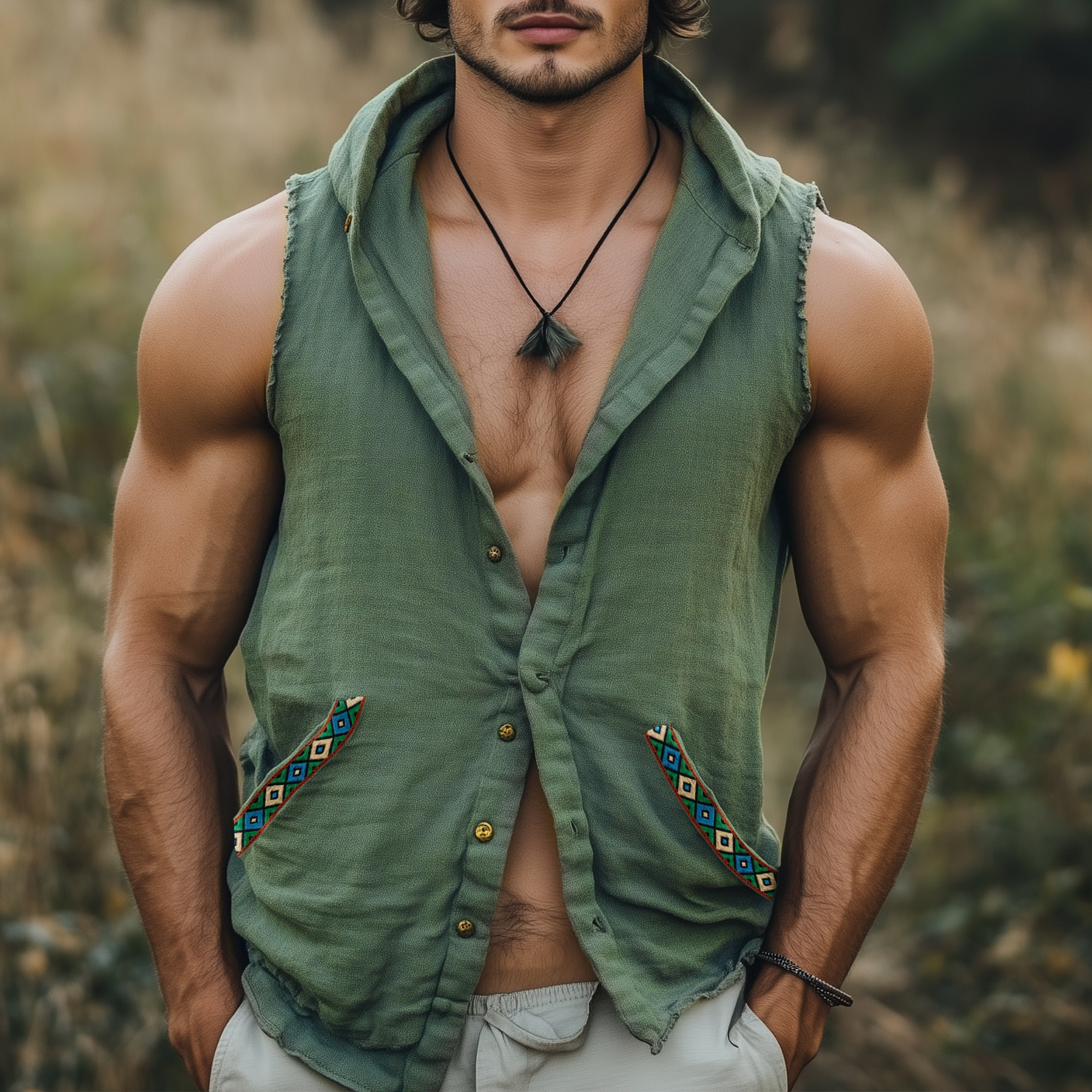Men's Vintage Cotton And Linen Embroidered Vest Tops